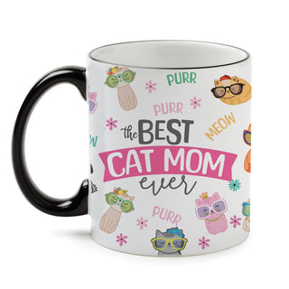 Best Cat Mom Ever White Coffee Mug with Black Rim and Handle-11 oz