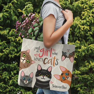 Just a Girl Who Loves Cats Burlap Tote with Black Handle