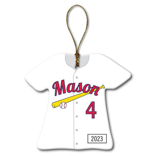 Baseball Jersey Personalized Ornament - Blue/Red Pinstripes
