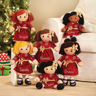 Rag Doll with Dark Red Velvet Dress - Dark Hair Medium Skin