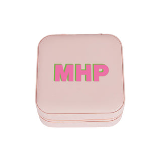 Pink Zip Travel Jewelry Case with Floral Butterfly Initial