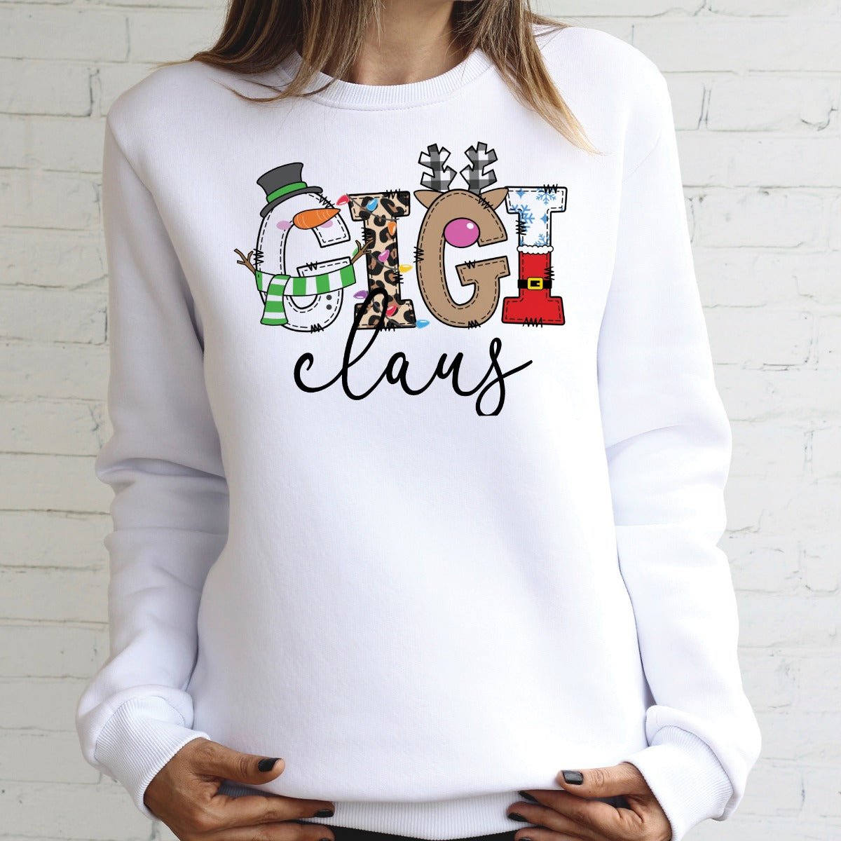 Proudly display your grandparent status on this Christmas sweatshirt! Festive and colorful, this holiday design proclaims you "Gigi Claus" in bold lettering accented with holiday imagery on a white background. This fun sweatshirt will be perfect to wear throughout the holiday season while you spend time with the grandkids.