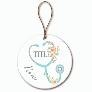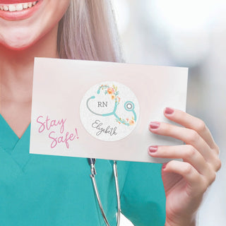 Floral Stethoscope Personalized Round Stickers - Set of 48