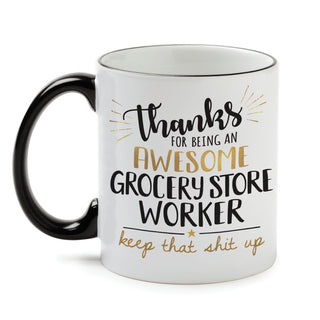 Thank You Grocery Store Worker White Coffee Mug with Black Rim and Handle-11oz