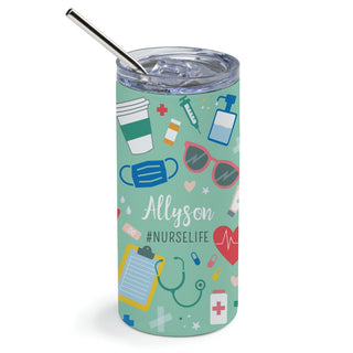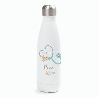 Floral Stethoscope Personalized Stainless Steel Water Bottle