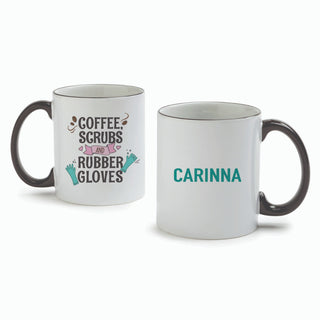 Coffee Scrubs Rubber Gloves White Coffee Mug with Black Rim and Handle-11oz