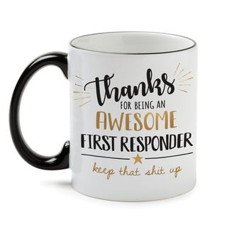 Thank You First Responder White Coffee Mug with Black Rim and Handle-11oz