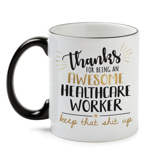 Thank You Healthcare Worker White Coffee Mug with Black Rim and Handle-11oz