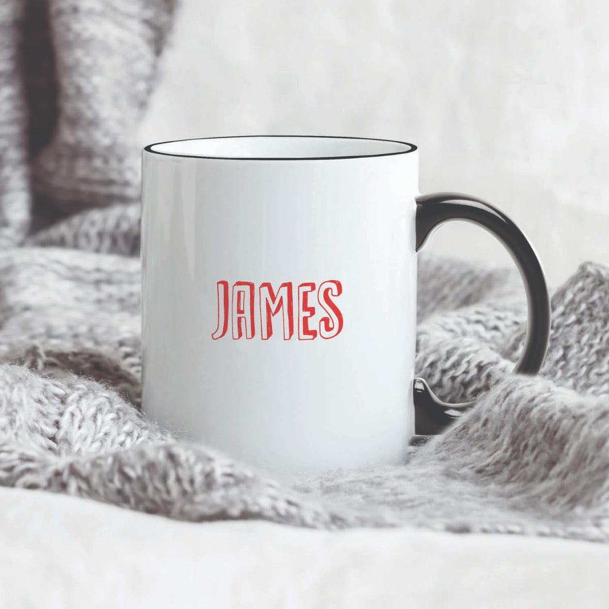 Life Laughing White Coffee Mug with Black Rim and Handle-11oz