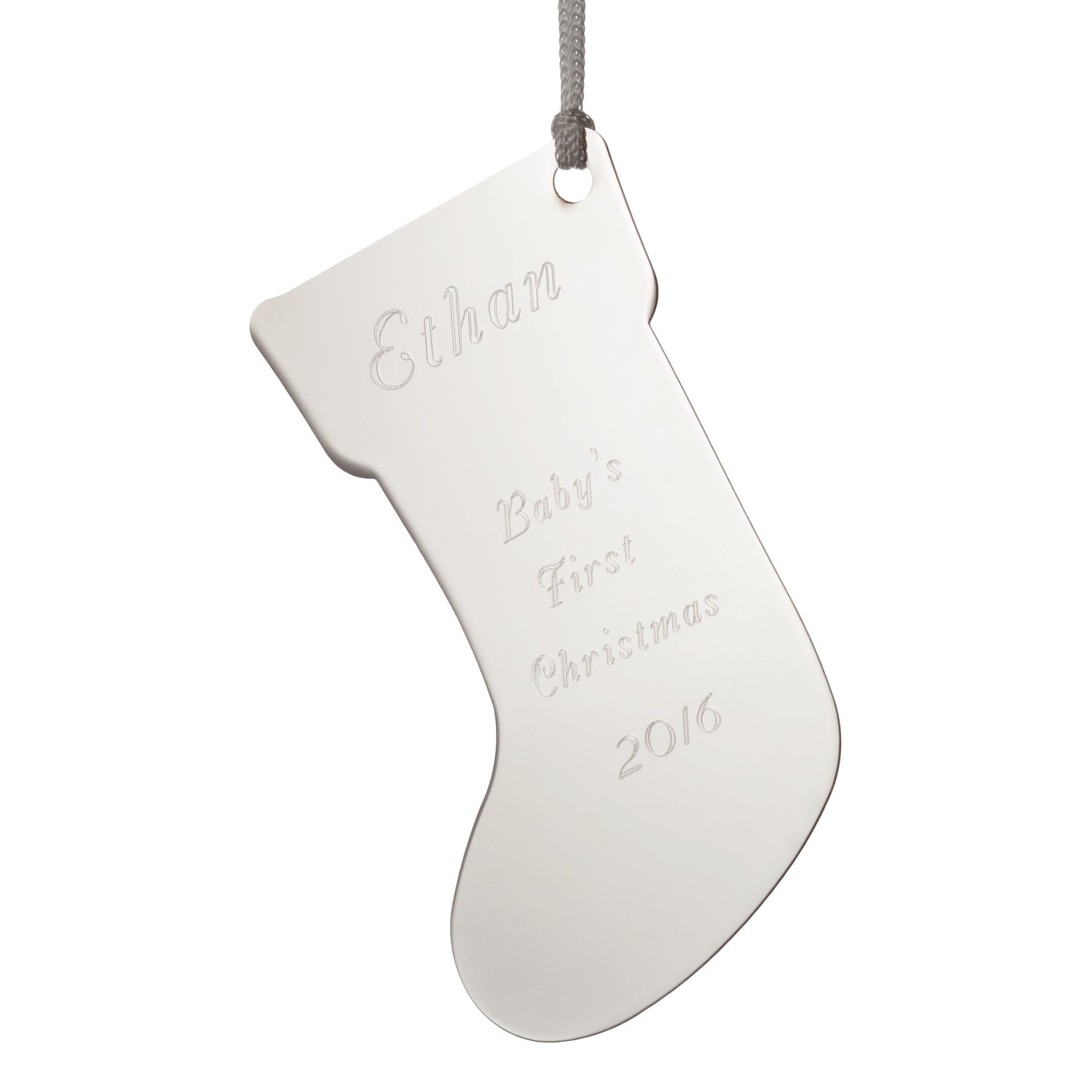We professionally engrave any name at the top and 4 optional lines of personalization on the stocking. Nickel plated and tarnish-resistant. Makes a wonderful gift.