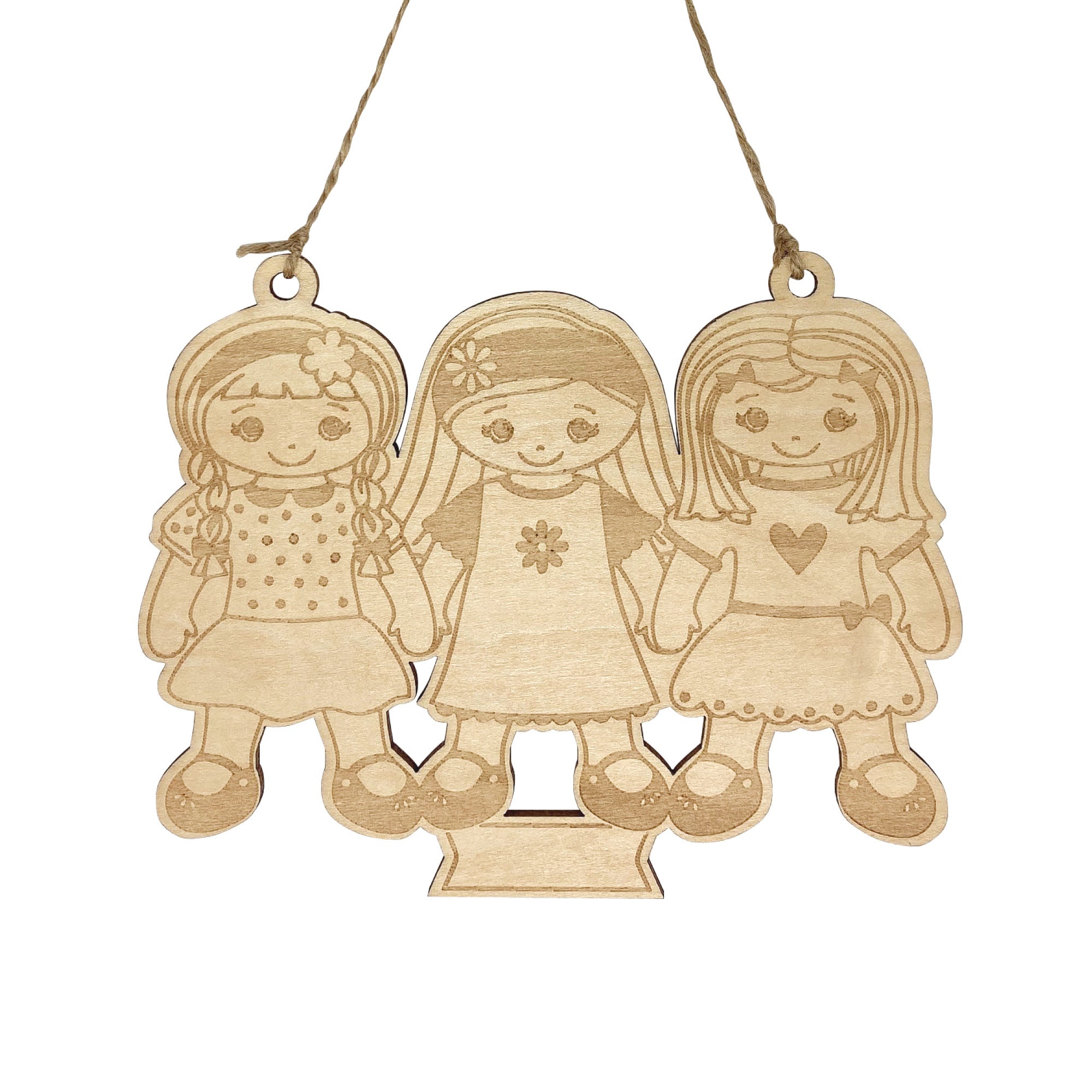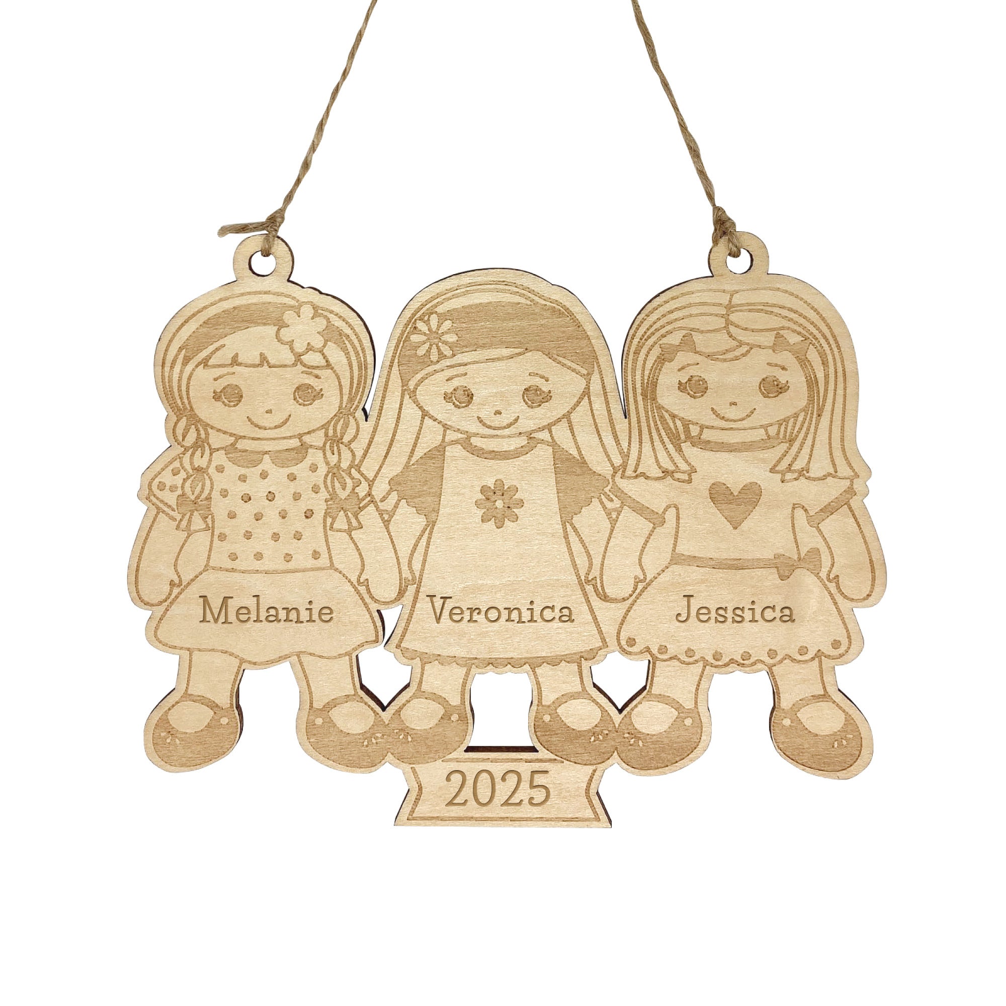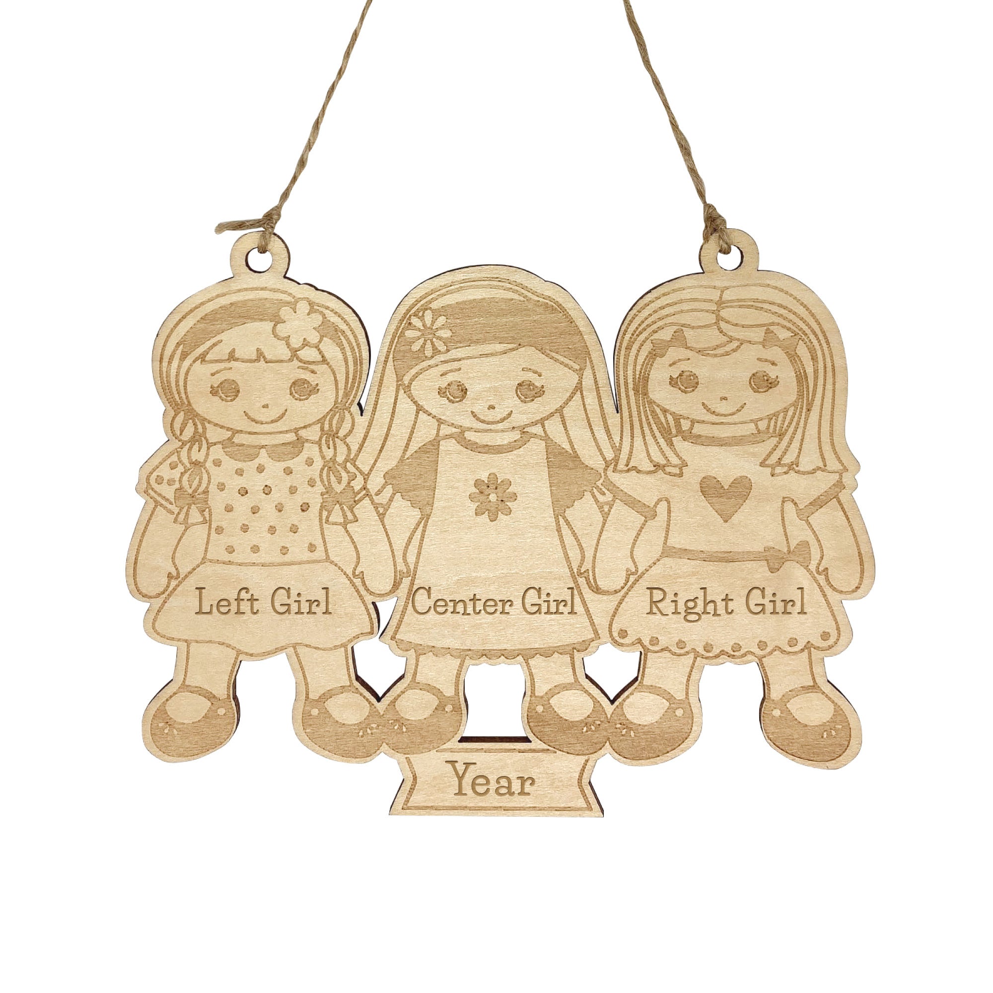 Celebrate sisterhood, friendship, and family with this beautifully crafted Three Girls Wood Ornament. Featuring an elegant wooden design, this personalized ornament makes a heartfelt addition to any holiday tree. Personalize it with names and a year for a cherished keepsake that captures the joy of togetherness.