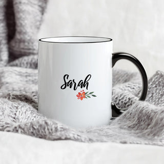 Floral Crazy Chicken Lady White Coffee Mug with Black Rim and Handle-11oz