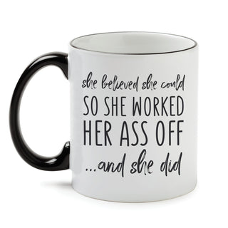 She Believed She Could White Coffee Mug with Black Rim and Handle-11oz