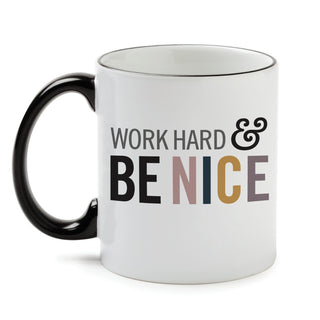 Work Hard & Be Nice White Coffee Mug with Black Rim and Handle-11oz