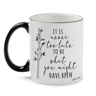 It Is Never Too Late White Coffee Mug with Black Rim and Handle-11oz