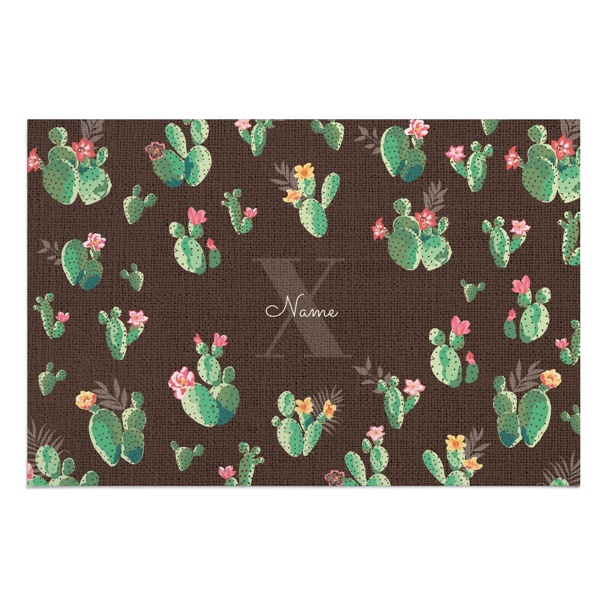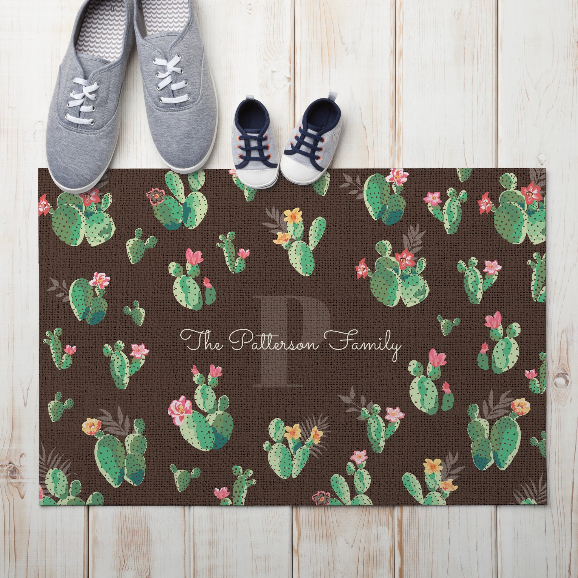 Welcome guests with a pop of desert charm. This Floral Cactus Pattern Doormat features a playful cactus design accented with soft floral details, bringing a fresh, modern Southwest feel to your entryway. Designed with a slim 1/4" profile, this lightweight doormat fits easily under most doors while adding style and personality to your porch, patio, or indoor entry. Its compact 18" x 27" size makes it perfect for apartments, front doors, or layered rug styling.