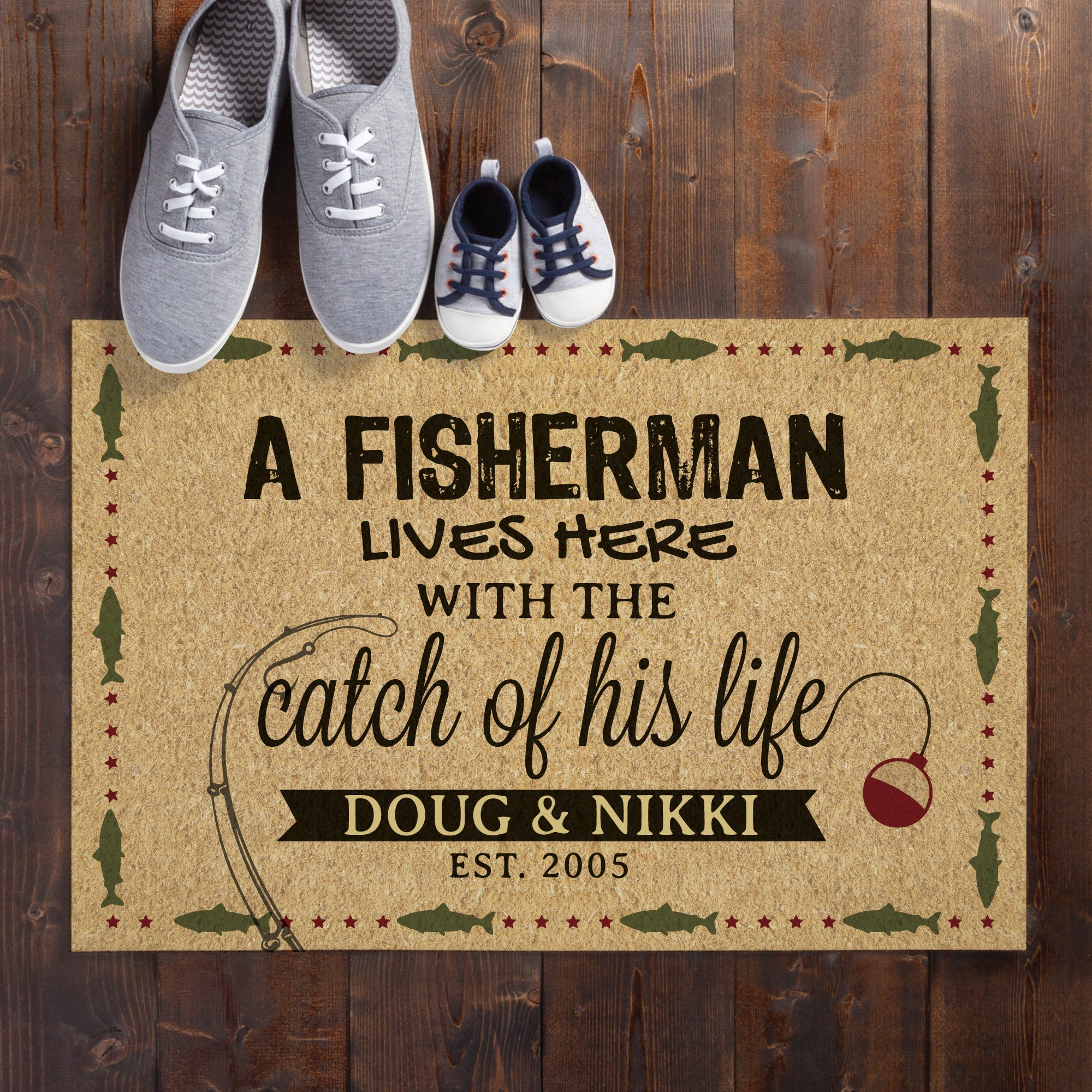 A Fisherman Lives Here Doormat - 18x27 Inch, 1/8" Thin