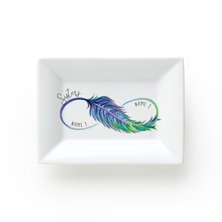 Sister Infinity Feather Personalized Rectangle Trinket Dish