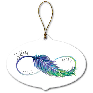 Sister Infinity Feather Personalized Ceramic Oval Ornament