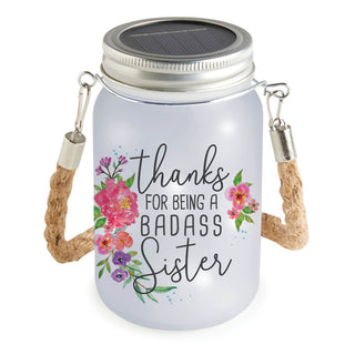 Thanks For Being A Badass Sister Solar Mason Jar With White Lights