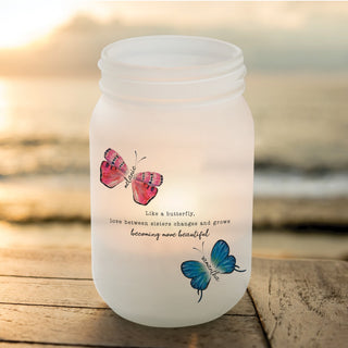 Butterfly Sisters Personalized Frosted Mason Jar Votive Holder