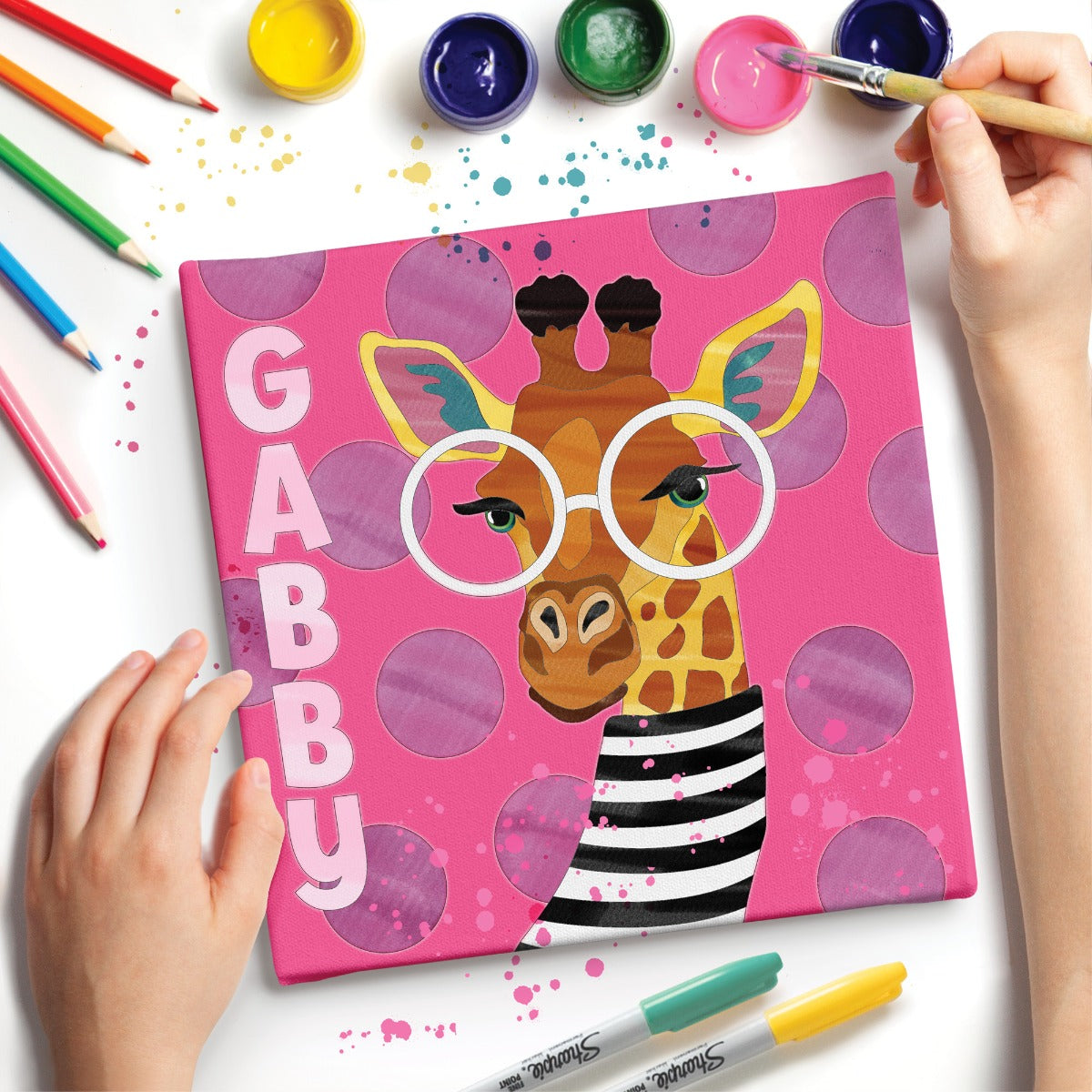 Elevate your style with this color-your-own giraffe wall art! A whimsical, bespectacled giraffe is the star of this DIY design, ready to be personalized and decorated with permanent markers or acrylic paints. The extra-thick canvas provides plenty of decorating options and gallery-style quality wherever it's displayed. Makes a great birthday or holiday gift idea for a daughter, son or grandchild.