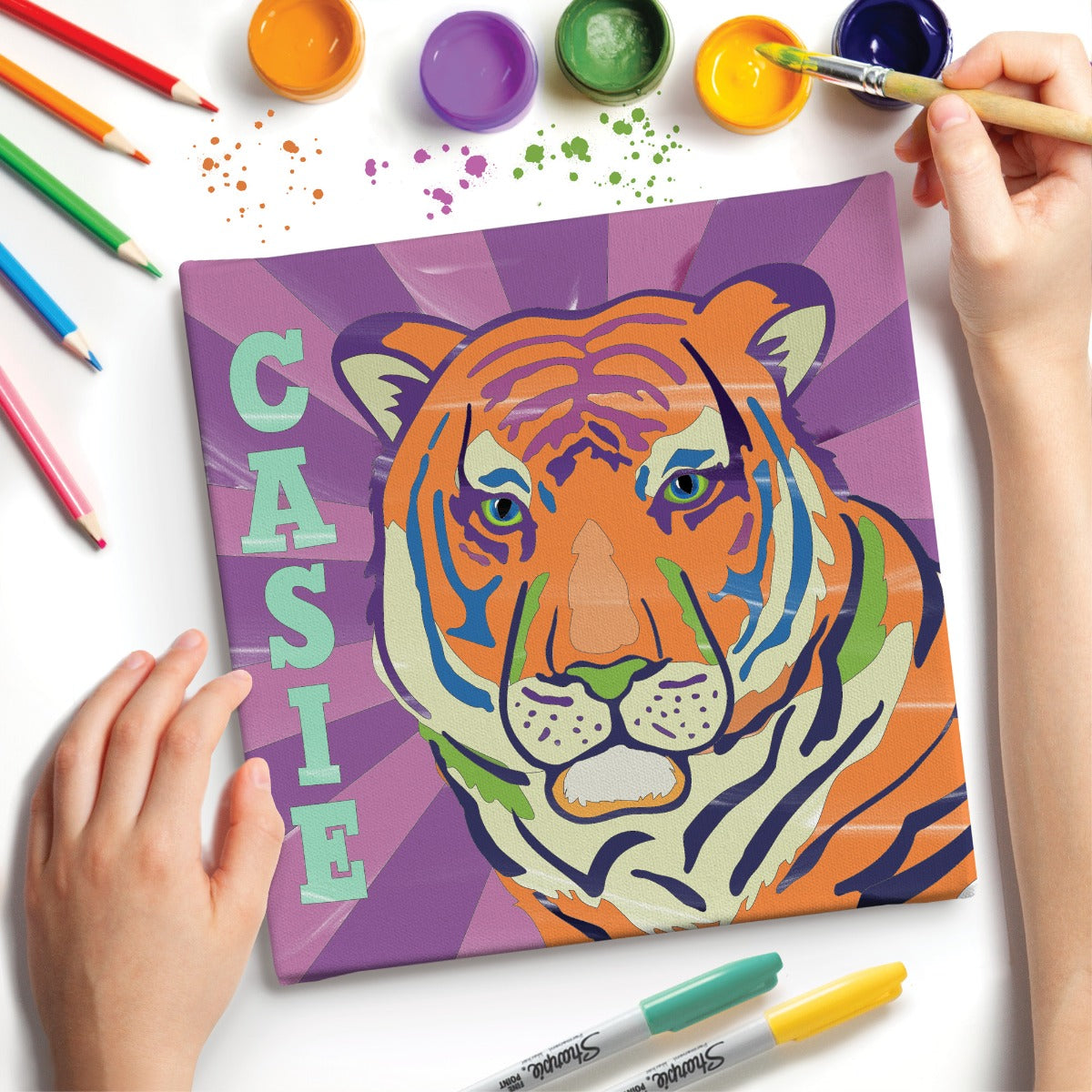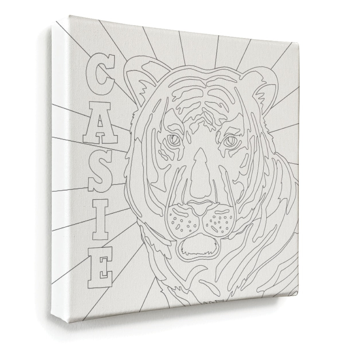 Bring out your wild side with this color-your-own tiger wall art! This DIY design showcases a majestic tiger beside a personalized name. The extra-thick canvas provides plenty of decorating options and gallery-style quality wherever it's displayed. Decorate with permanent markers or acrylic paints to create a look that's all your own!