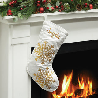 Red Cuff Stocking with Red Script Name Snowflake Pattern