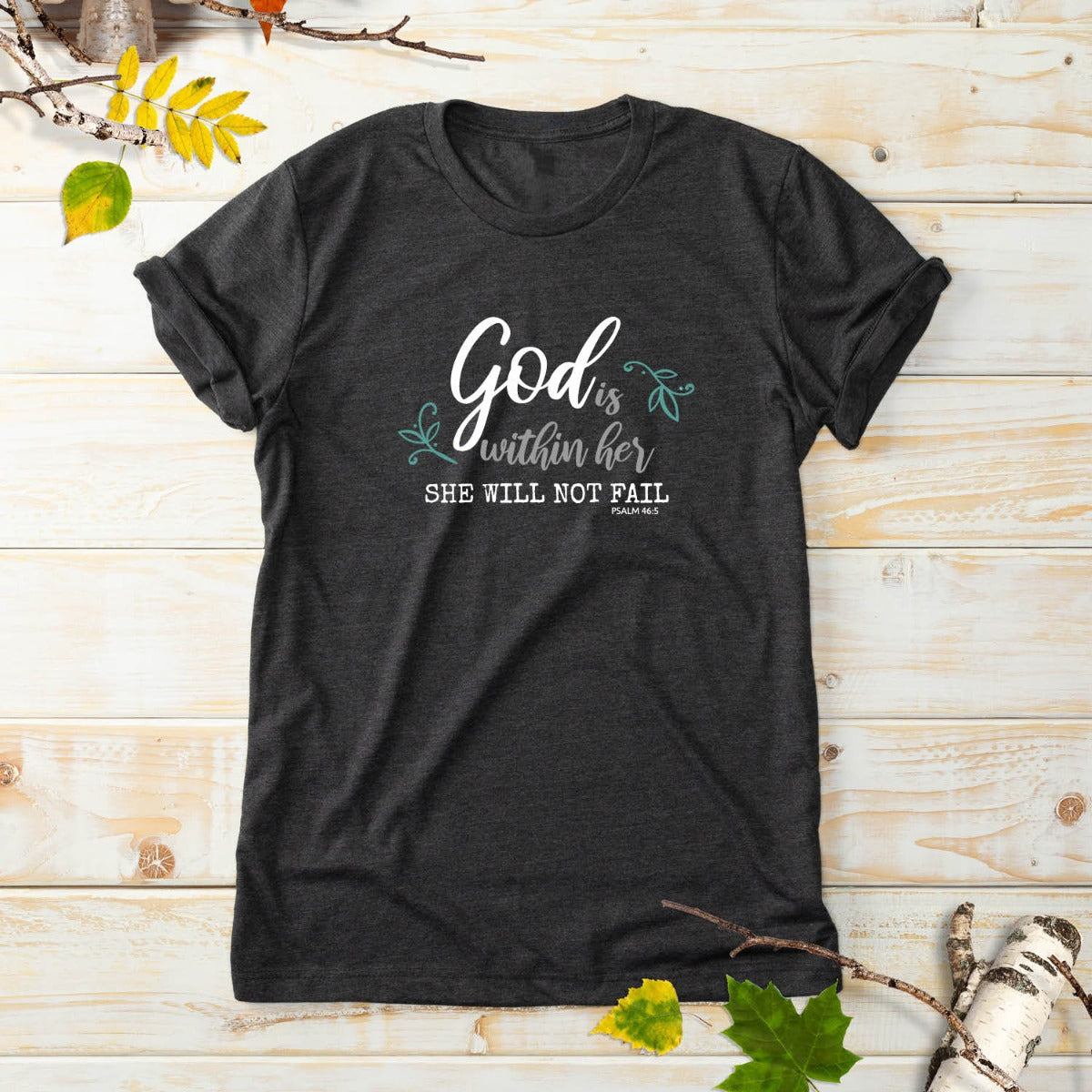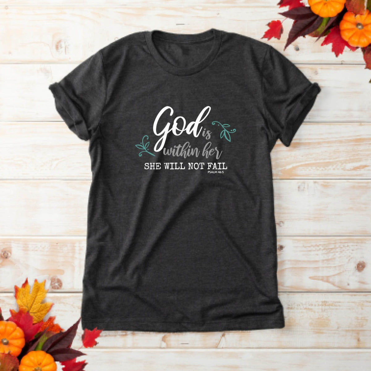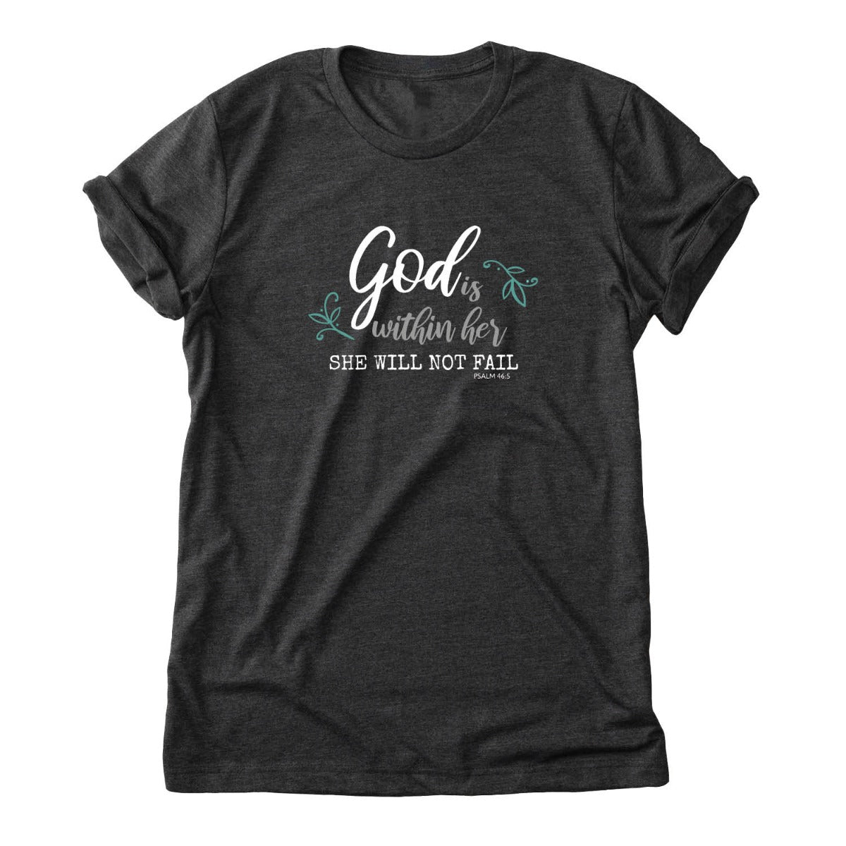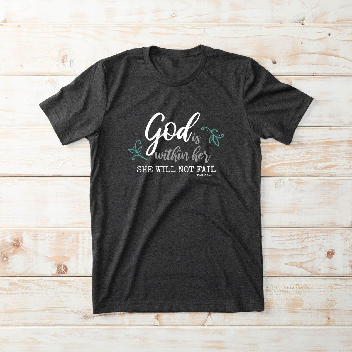 Wear an expression of faith on this stylish T-shirt. This soft cotton tee features an inspirational quote that you'll enjoy wearing as you tackle the day's challenges. Casual design pairs perfectly with jeans, skirts or shorts. Also makes a thoughtful gift idea for a faith-filled woman in your life.