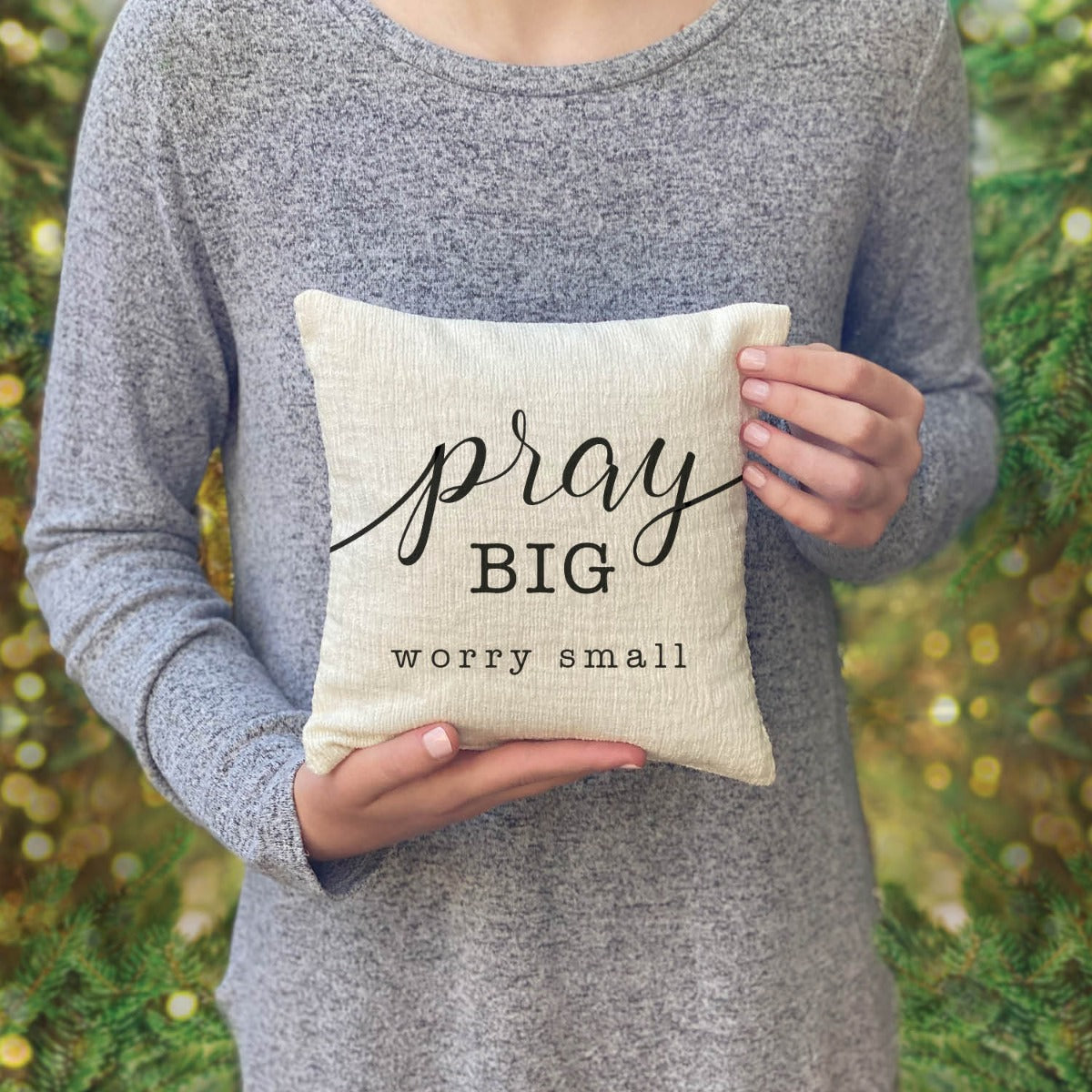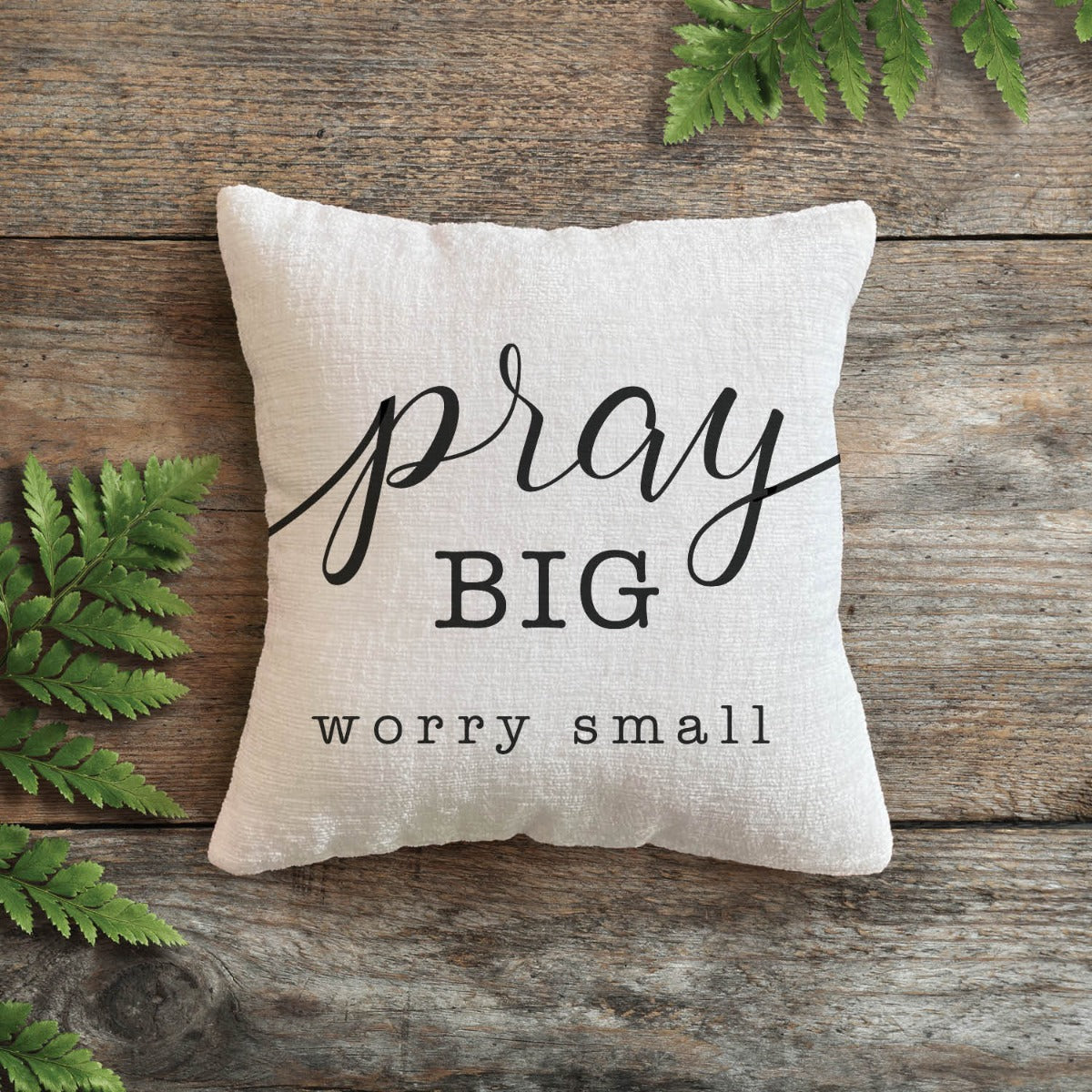 Give someone you care about a beautiful reminder with this faith-inspired gift pillow! Featuring the message, "pray big and worry small" this marvelous keepsake is sure to brighten someone's day. Makes a wonderful thank-you gift or comforting accent piece for any spiritual home!