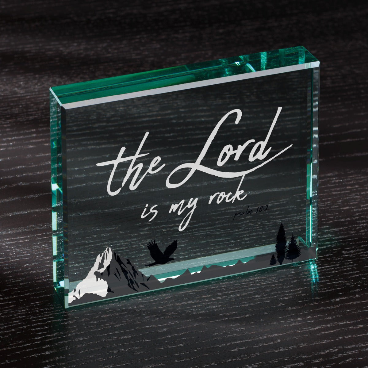 Weigh down your papers with this faith-inspiring design for a dazzling desk accent that is sure to stand out! Crafted from Jade Glass, this gorgeous paperweight features a notable Psalm in elegantly flowing lettering above a mountainous landscape. Makes a wonderful addition to your workspace or an unexpected gift idea for the young professional in your life!