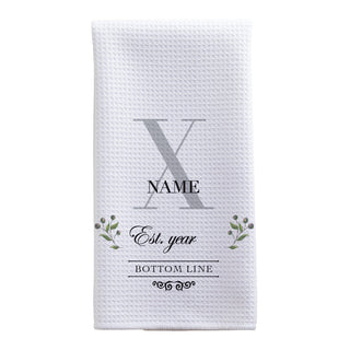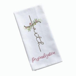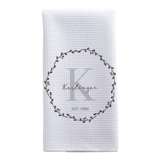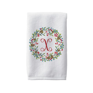 Holiday Floral Wreath with Initial Personalized Hand Towel