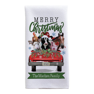 Merry Christmas Farm Animals Personalized Waffle Tea Towel