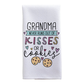 Grandma Never Runs Out of Kisses or Cookies Personalized Waffle Tea Towel