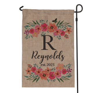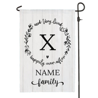 Floral Wreath Happily Ever After Personalized Garden Flag