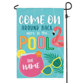 Come 'Round Back We're in the Pool Personalized Garden Flag