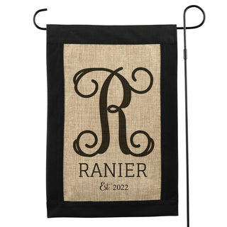 Fancy Letter Personalized Black Border Burlap Garden Flag
