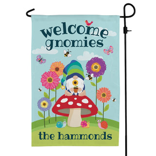 Welcome Gnomies Floral Mushroom Personalized Garden Flag