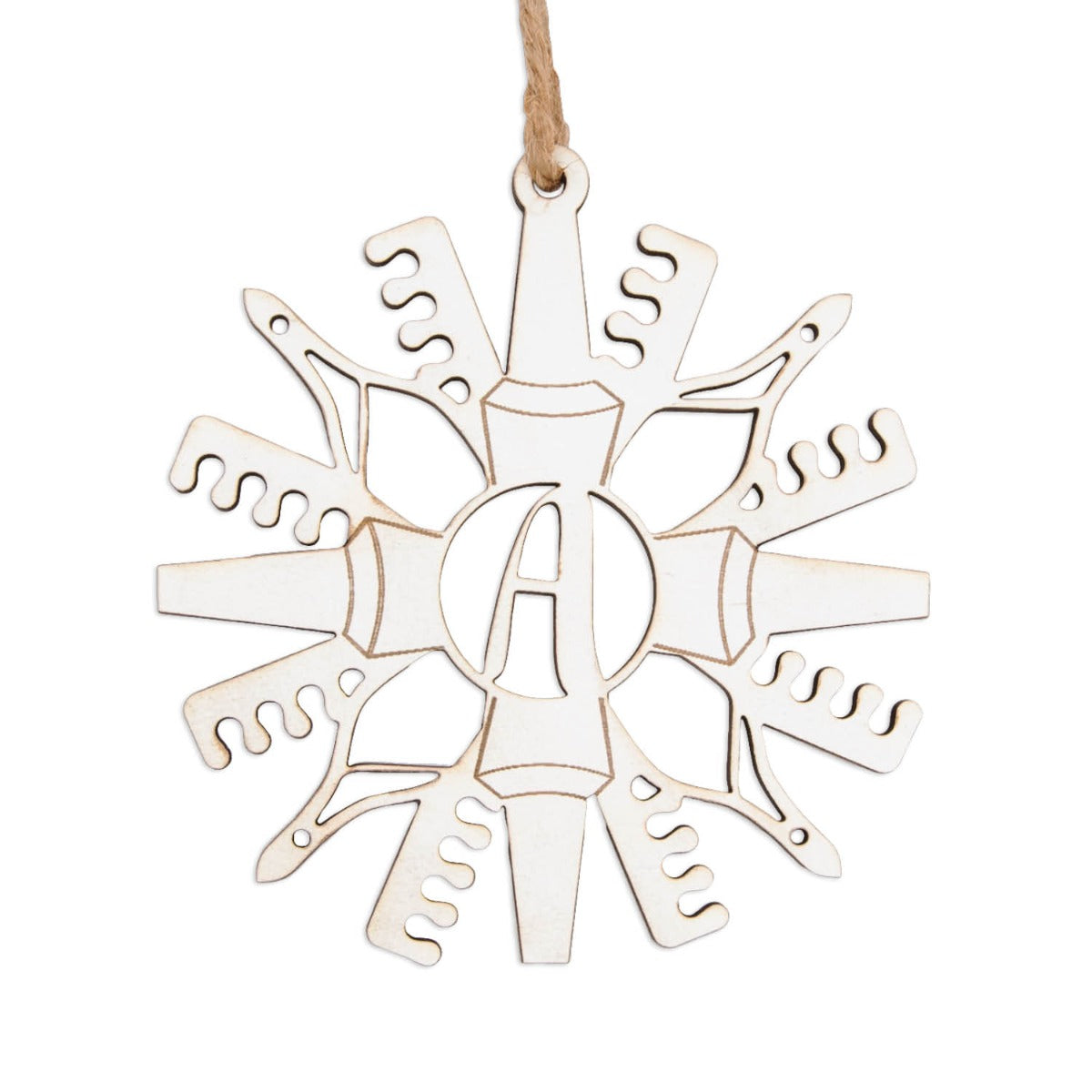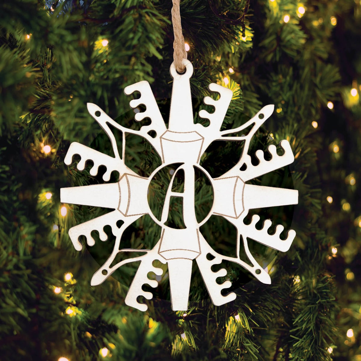 Your manicurist will be tickled down to her toes with this customized ornament! This white, wood design is fashioned into the shape of manicure tools featuring a personalized initial in the center. This one-of-a-kind ornament makes a perfect holiday gift for your manicurist.