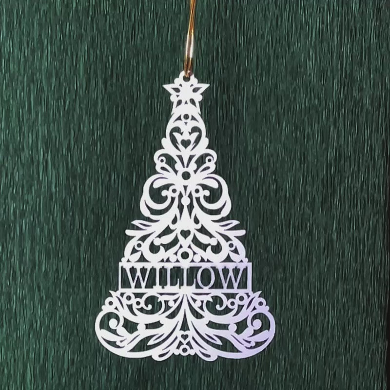 Trim the holiday tree with this beautiful wood tree ornament! Birchwood design is crafted into an elegant Christmas tree and personalized with a name. Painted white, this special ornament will perfectly complement a green pine background and become a favorite decoration year after year. Name will appear in all UPPERCASE letters.
