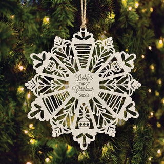 Baby's First Christmas White Wood Snowflake Ornament with Name and Year
