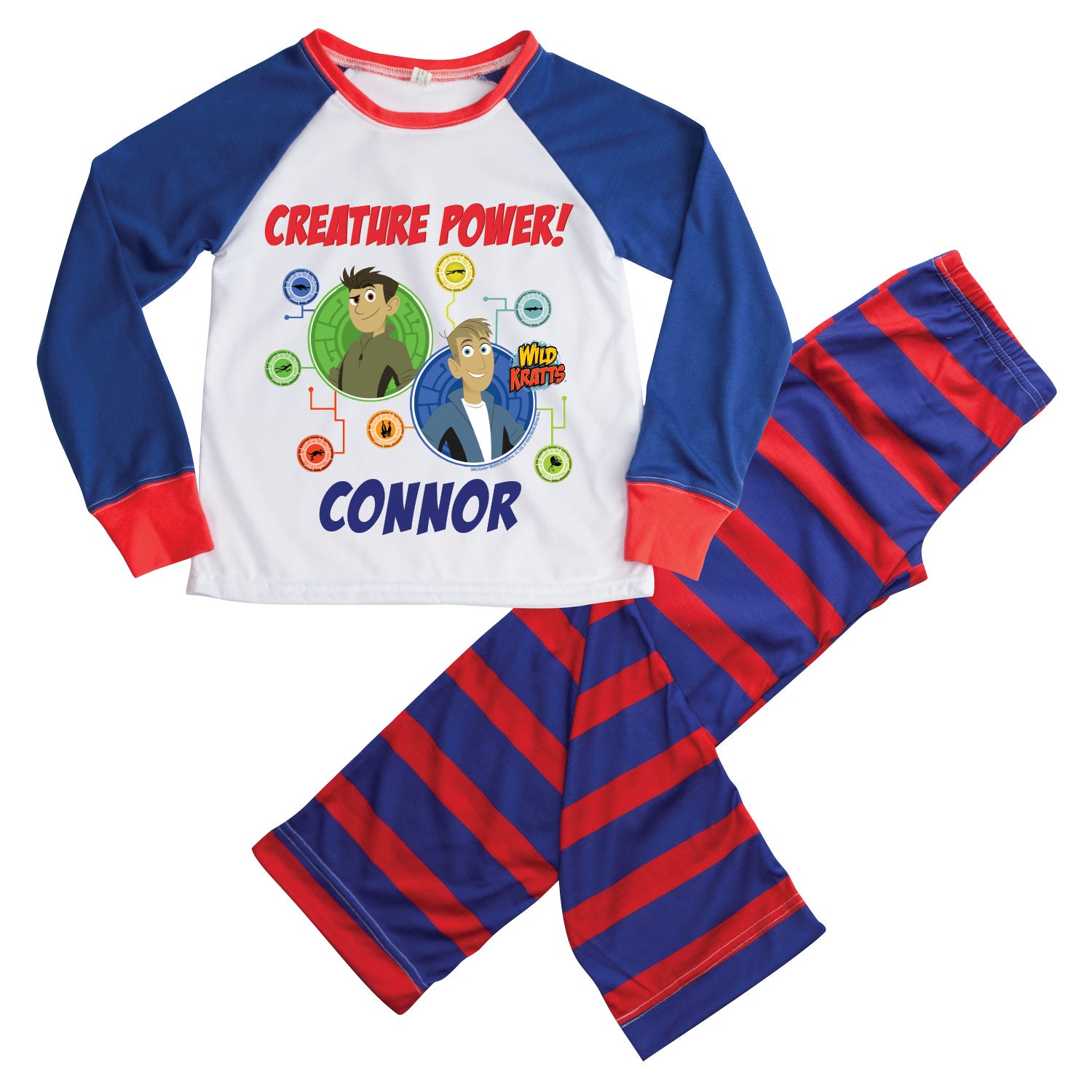 Featuring the Kratt brothers along with the phrase "Creature Power!", these super soft, super comfy pajamas are just what your Wild Kratts fan needs to have sweet dreams! Set includes top and bottom. Make them extra special by adding a name up to 10 characters!