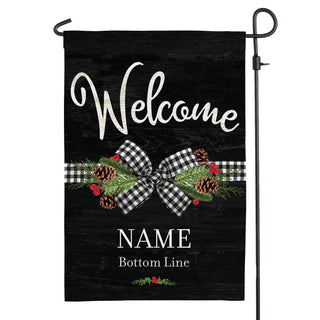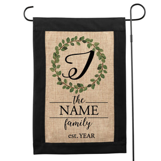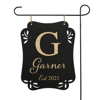 Name and Initial Personalized Black Wood Hanging Garden Flag