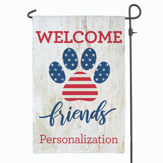 Welcome Friends Patriotic Paw Print Personalized Garden Flag