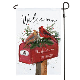 Welcome Cardinal Couple On Mailbox Personalized Garden Flag