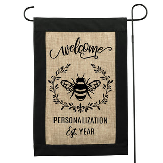 Welcome Bee Personalized Wreath Burlap Garden Flag